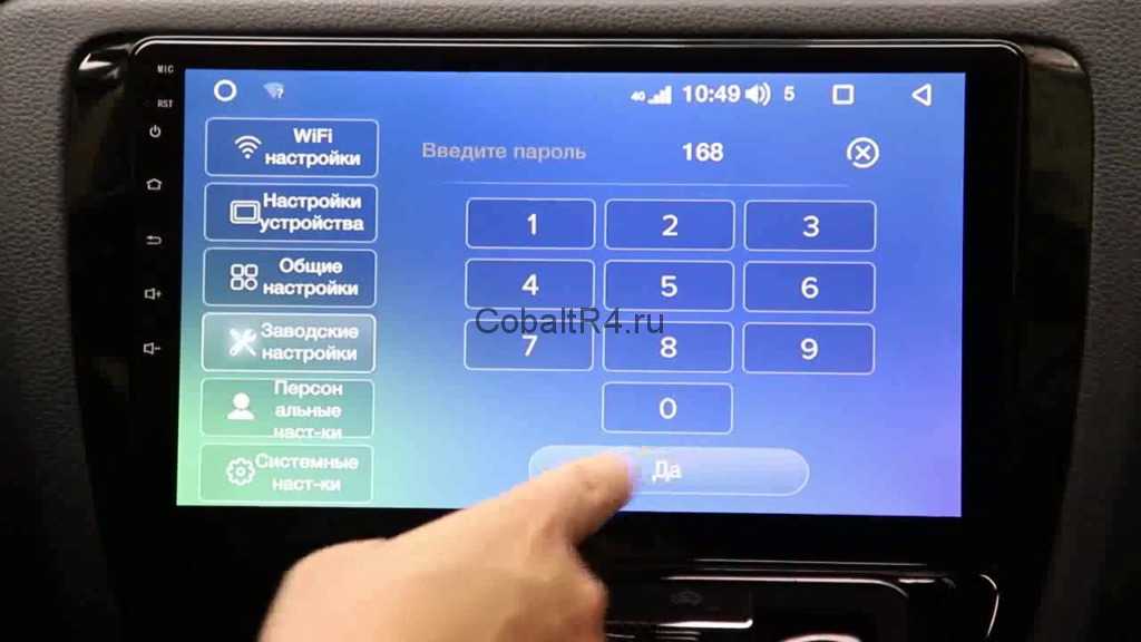 Магнитолой будет предложено ввести пароль для доступа к заводским настройкам. Опасаться этого не стоит, никакого сброса не произойдет. Вводим 168 и жмём “Да”:
