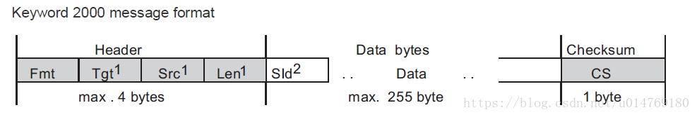 Target address byte — Tgt: Адресная информация Source address byte — Src: Информация об адресе источника (устройства передачи) является физическим адресом. Этот байт является необязательным (всегда используется с байтом адреса назначения) и требуется только в топологии многоузловой шины. Для двухточечных соединений это может быть опущено. Target and Source address bytes