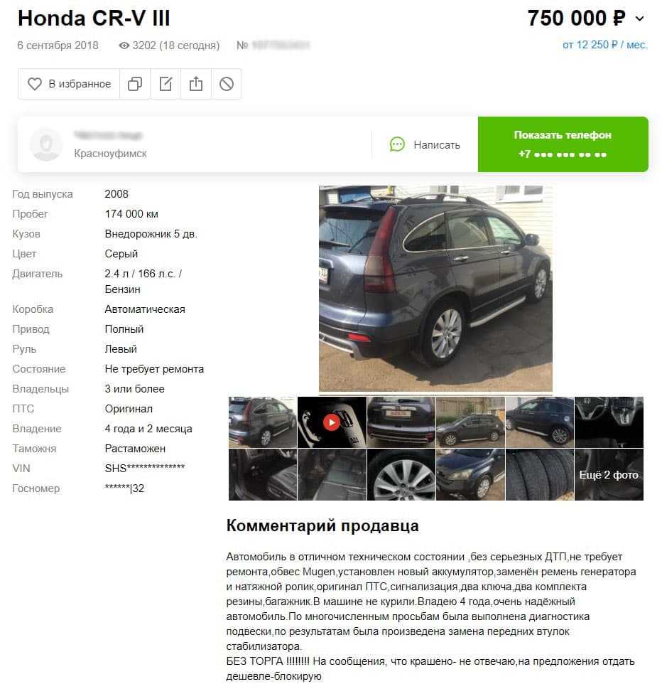Нелишним будет пробить машину на наличие ДТП. Продавец этой CR-V пишет, что у машины нет серьезных аварий.