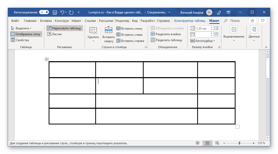 Как объединять и разбивать ячейки в таблице Word