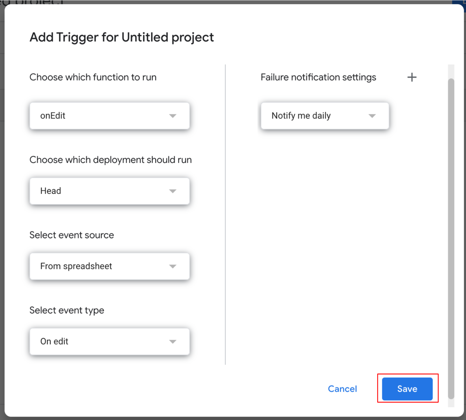 Creating a trigger and saving it will open a pop-up that will ask you to log-in and authorize your program since this is custom code.When asked to verify, click advanced options and proceed to “Go to Untitled Project”. Grant access to your account to be able to edit your spreadsheet.