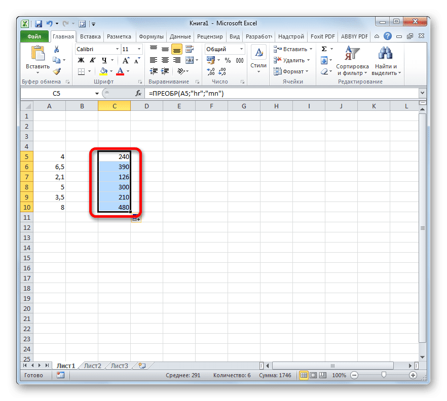 - Все готово, благодаря этому несложному действию нам удалось оперативно перевести часы в минуты для всех значений столбца.