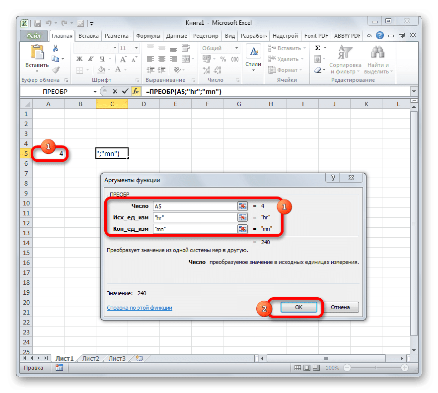 Наряду с обычным перемножением, в Эксель существует специальная функция ПРЕОБР, позволяющая перевести часы в минуты.