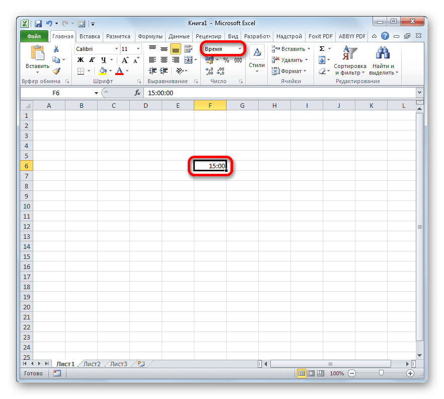 Чтобы увидеть, как это происходит на примере, вам нужно выбрать любую ячейку на листе в формате времени.
