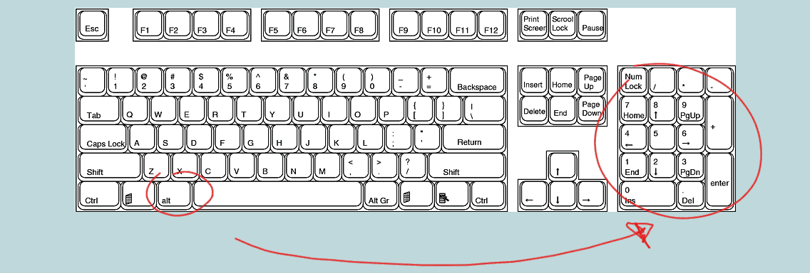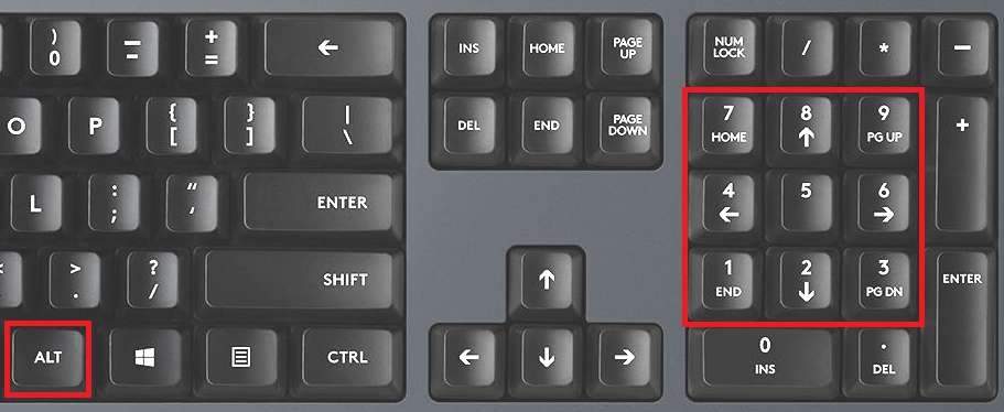 Затем нажмите клавишу Alt и, удерживая ее, на цифровой клавиатуре введите цифру 3. Теперь уберите палец с клавиши Alt.