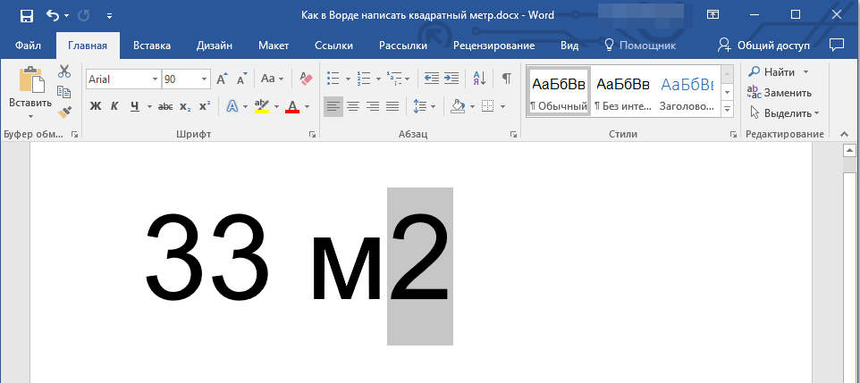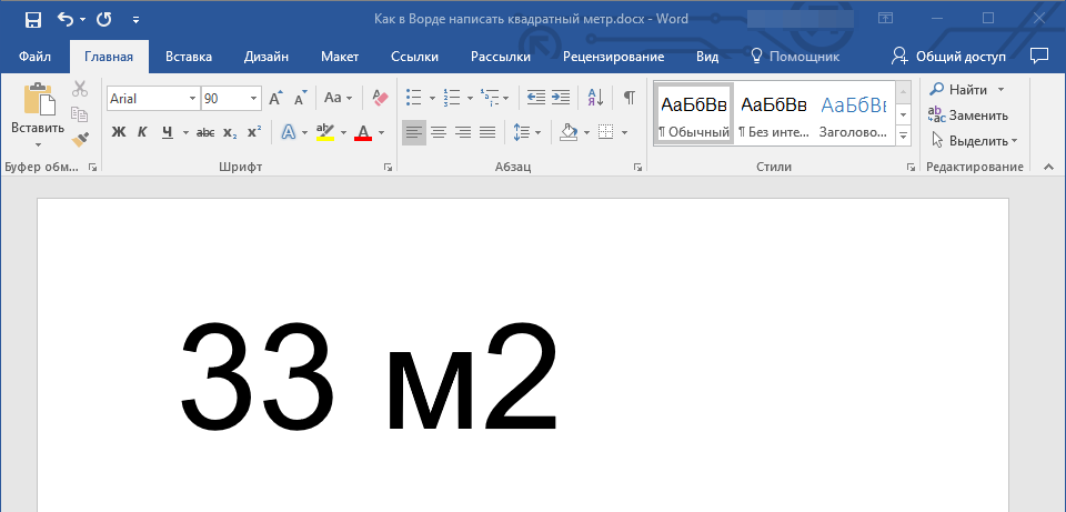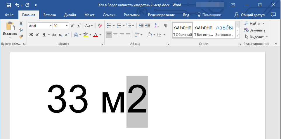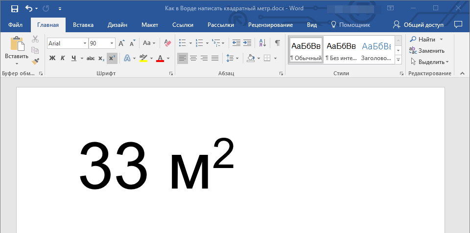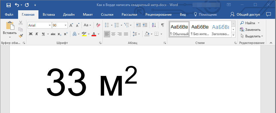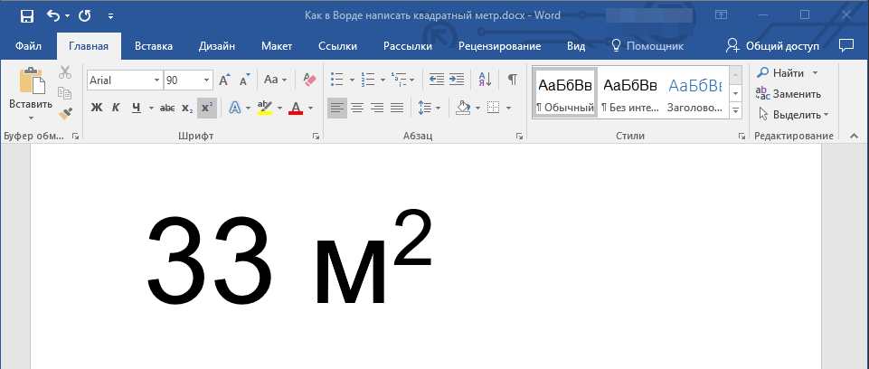 3. Обозначение квадратных или кубических метров примет корректный вид. Кликните в месте, после обозначения метров, чтобы отменить выделение и продолжить обычный набор текста.