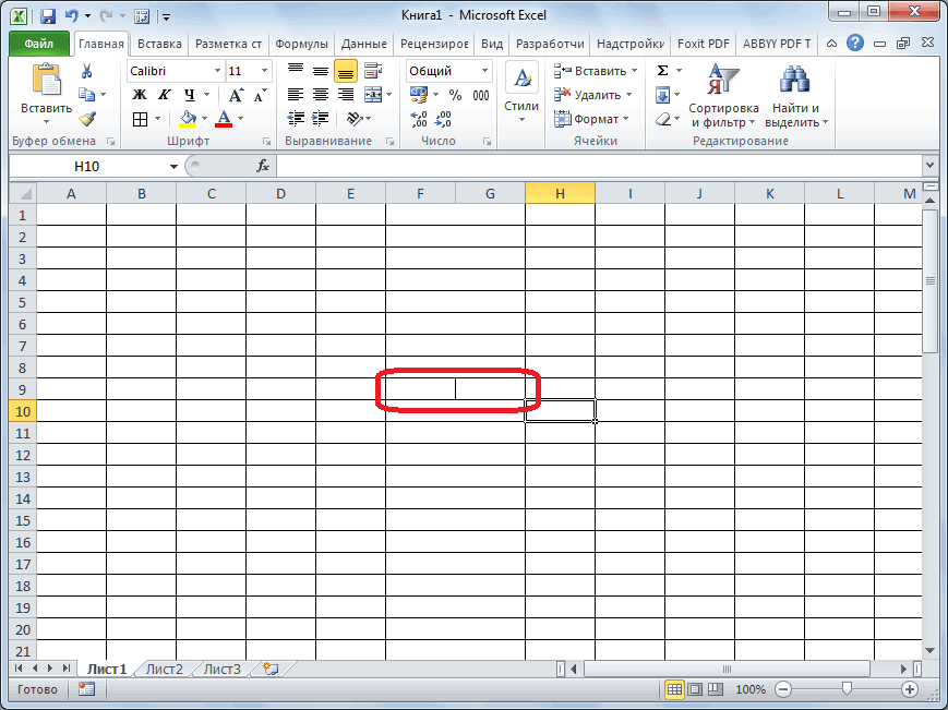 - В результате нам удалось “разбить” ячейку на две части, хотя на самом деле это разъединение ранее объединенных ячеек.