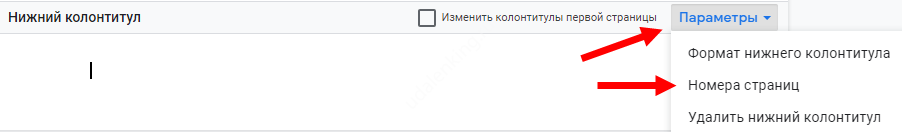 На нижней панели, нажмите «Параметры» и нажмите «Удалить нижний колонтитул» чтобы удалить нижний колонтитул.