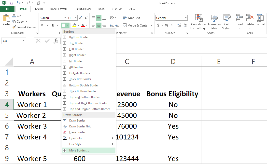 Давайте исследуем опцию More Borders в ее раскрывающемся меню.