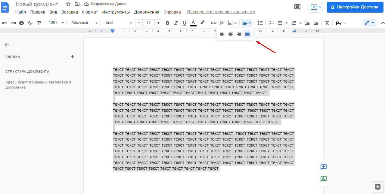 Как и в стандартном Word, пользователь может настроить параметры выравнивания текста – по левому и правому краю, центру или ширине, когда оба края текста остаются симметрично ровными. По умолчанию установлен формат выравнивания по левому краю. Также пользователь может настроить отступы (в том числе отдельно для первого слова в абзаце), межстрочный и межабзацный интервалы, границы и даже заливку абзаца.