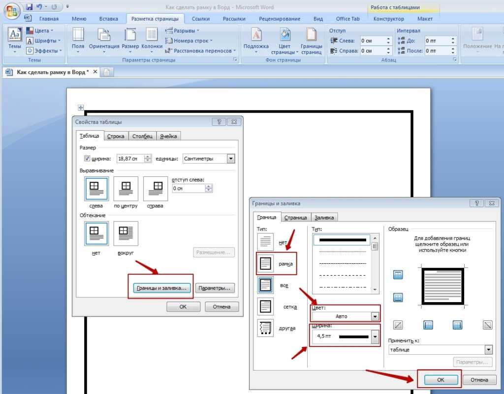Как сделать рамку в ворде: как создать обрамление и изменить параметры, оформление страницы и всего документа