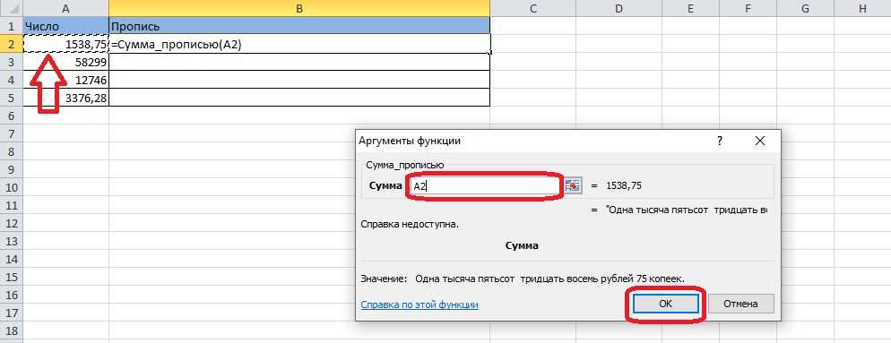 - Выберите «Сумма прописью» и нажмите «ОК».