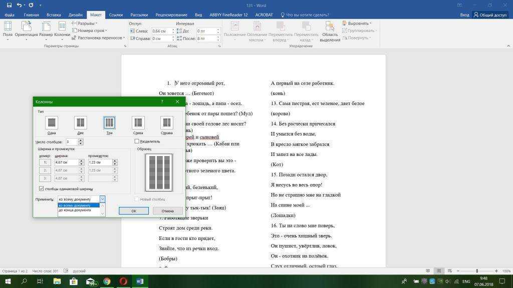 В этом разделе было рассмотрено как сделать две колонки в Word, но ровно по такому же принципу, документ можно разделить на 3 (три) и более колонок. Ограничений никаких нет.