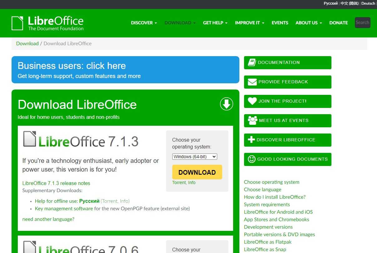 LibreOffice входит в стандартные репозитории основных дистрибутивов Linux. Кроме того, пакет доступен для Windows и macOS.