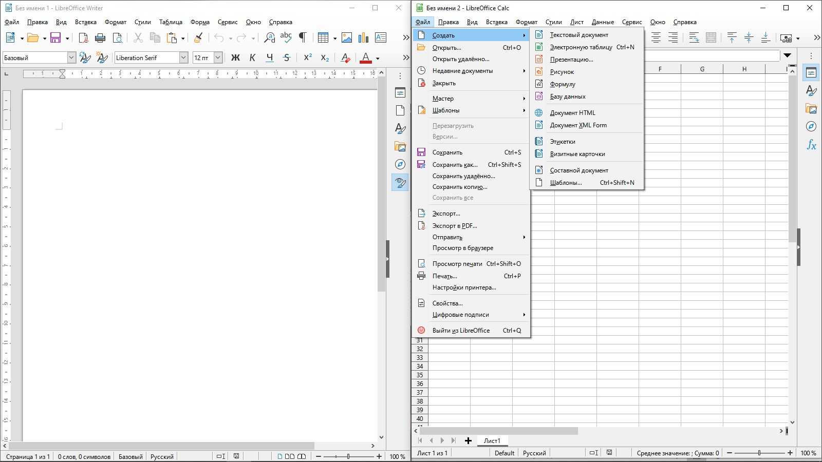 Интерфейс LibreOffice