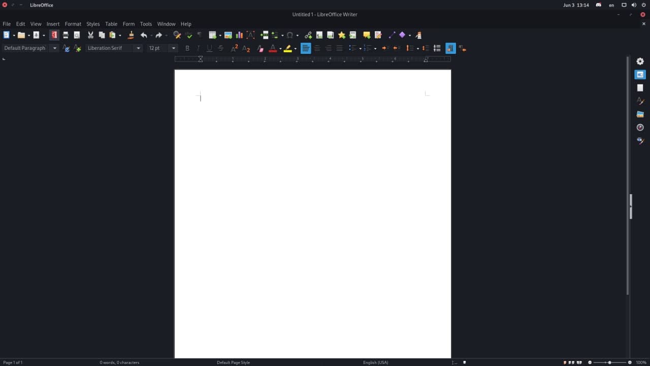 Если говорить о текстовом редакторе, то внешне он мало чем отличается от того же Word. По стилю напоминает версию 2007 года. Здесь примерно похожее расположение инструментов, линейки, меню. Лишь часто используемые инструменты и функции у Libre перемещены в правую панель. Еще и шрифты по умолчанию стоят совсем другие, но изменить это легко.