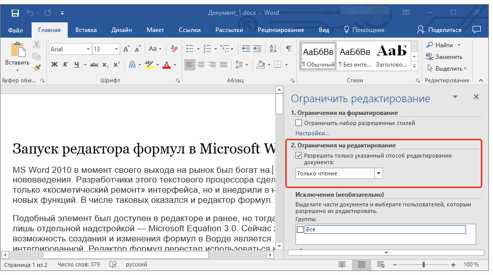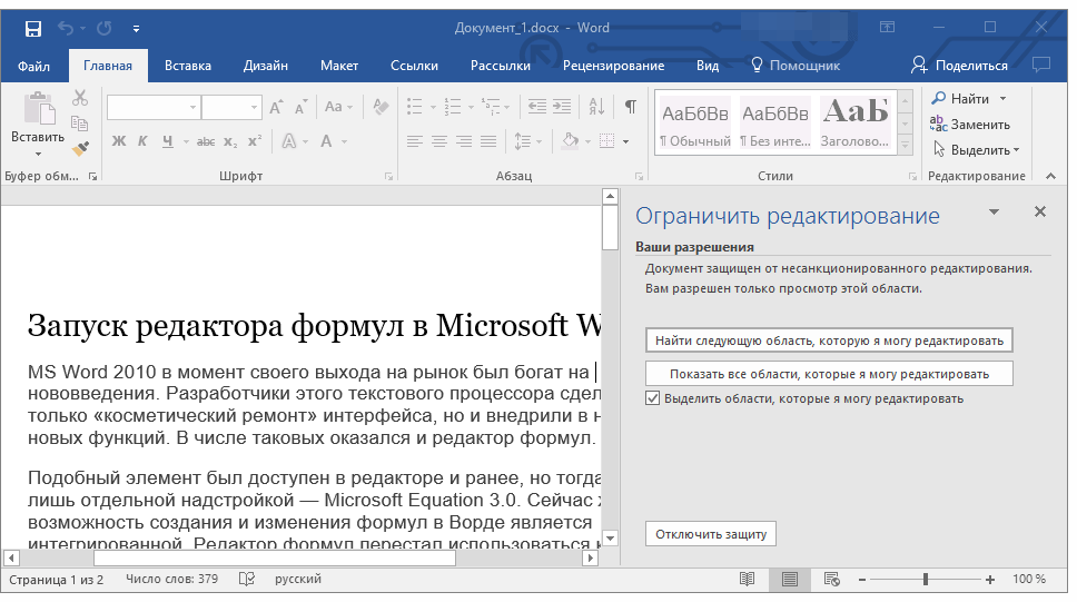 Решение проблемы: Документ MS Word не редактируется