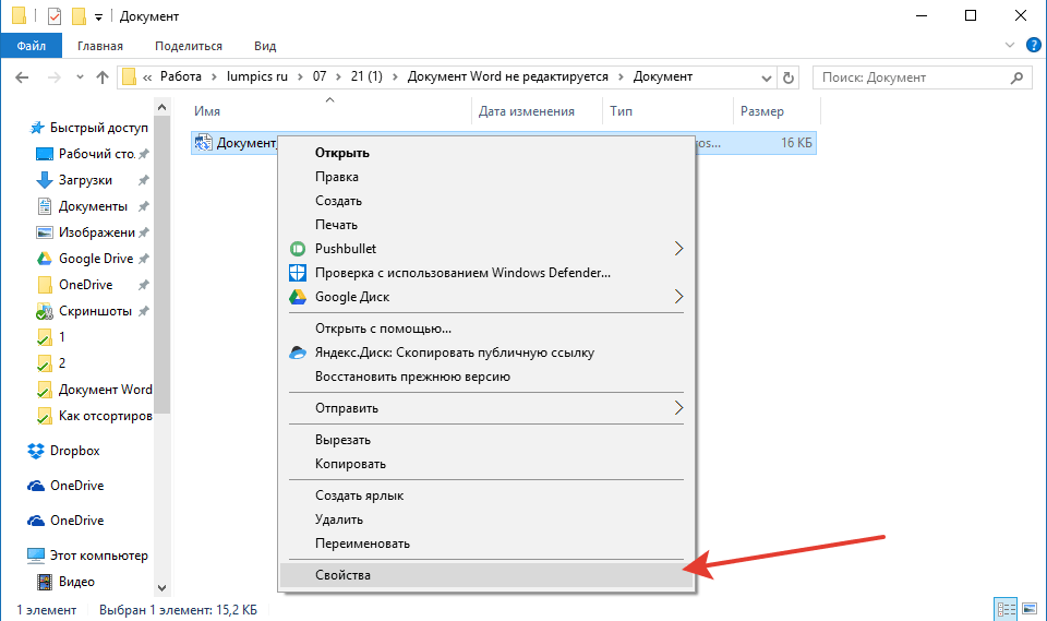2. Откройте свойства этого документа (правый клик — «Свойства»).