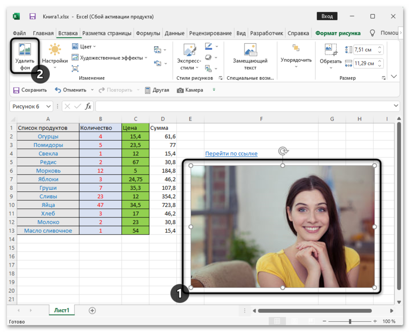 Вы заметили, что и у этого изображения границы фона четкие, поэтому Excel без проблем справился с удалением лишнего. Иногда придется произвести немного больше действий, чтобы достичь желаемого результата