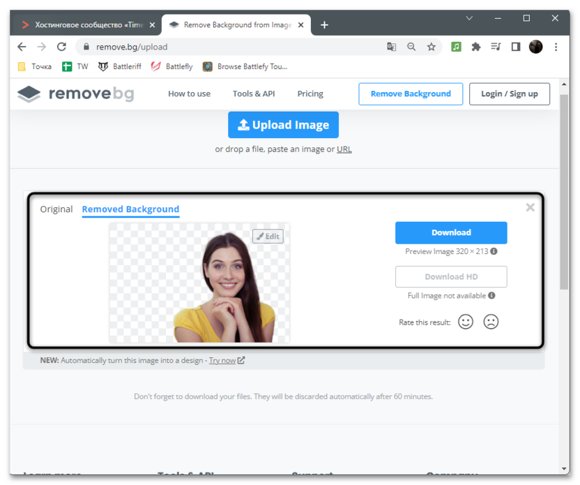 В качестве альтернативного варианта я рассмотрю автоматический процесс удаления фона при помощи специальных онлайн-сервисов. В некоторых случаях их использование будет оптимальным, поскольку возможностей Excel может быть недостаточно. В качестве примера я взял известный сайт remove.bg.
