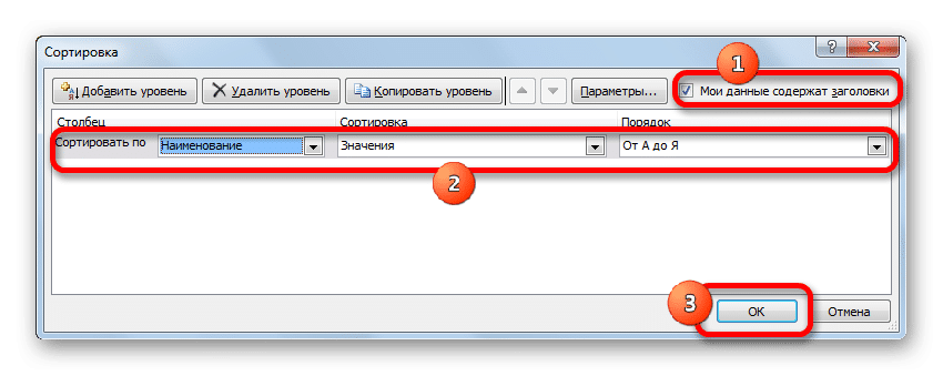 - В меню настраиваемой сортировки установите флажок рядом с параметром «Мои данные содержат заголовки».