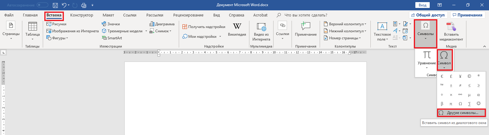 В программах пакета Microsoft Office (за исключением Microsoft Excel) можно воспользоваться ещё одним методом: