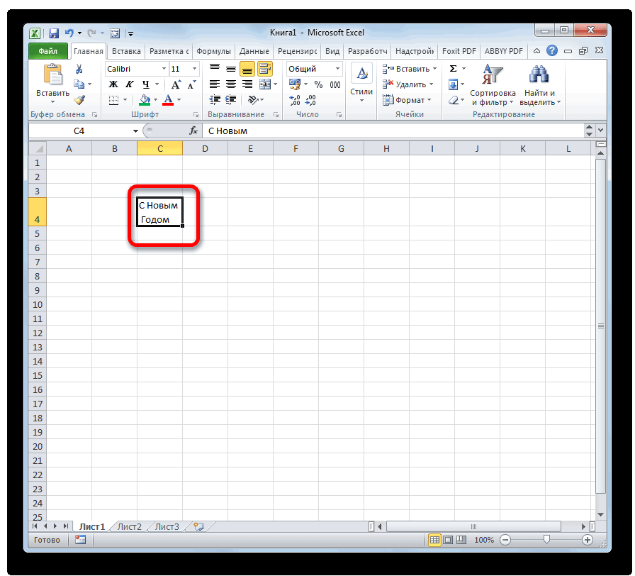 Финальный результат. Текст в ячейке перенесся на новую строку