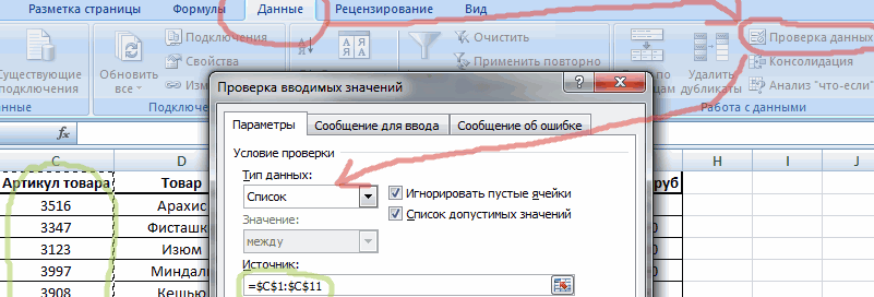 - Выделяем наш список компаний в Исходный диапазон (List Range) .