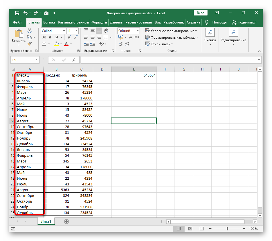 Мы специально будем использовать такие данные, чтобы наглядно отобразить, как Excel осуществляет сортировку.