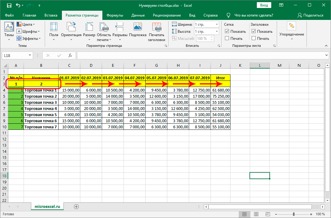 Минусом первого и второго методов является то, что приходится растягивать номера на другие строки, что при больших размерах таблицы по вертикали не слишком удобно. Поэтому давайте рассмотрим еще один способ, который избавляет от необходимости выполнять такое действие.