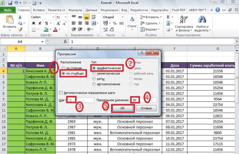 Фото: Нумерация строк с помощью прогрессии
