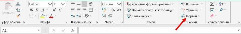 - Разверните меню «Ячейки» и кликните на «Формат».