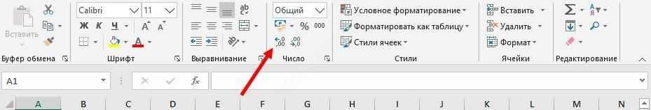 Кликните по кнопке «Увеличить разрядность» в Эксель нужное число раз.