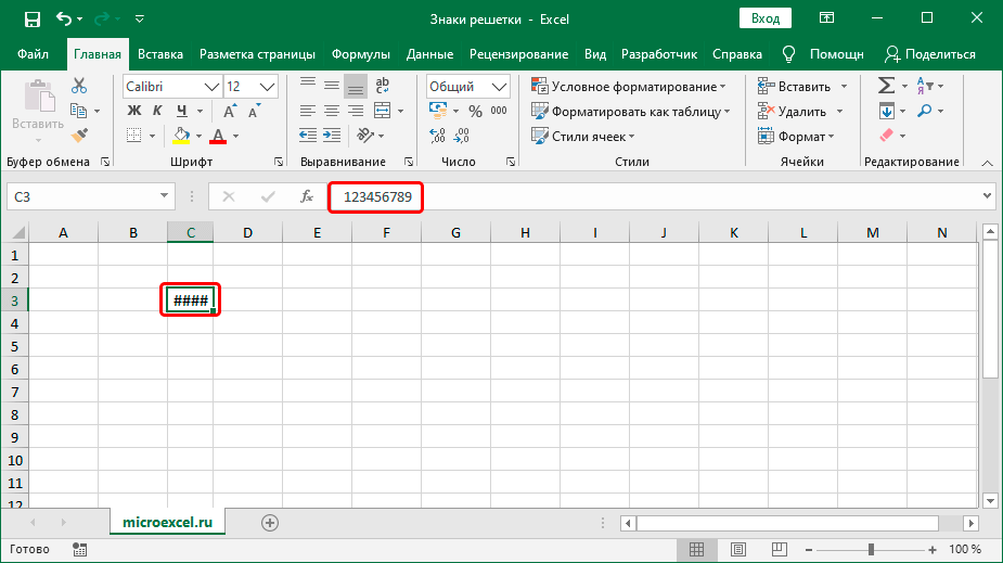 Следующая ситуация, когда Excel не видит числа в ячейках, а вместо них появляются обычные решетки. В таком случае можно воспользоваться одним из приведенных ниже методов.