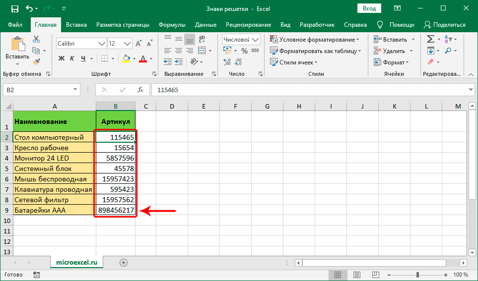 - При вводе длинного числа начните с одинарной кавычки «’», а потом ставьте длинную цифру. К примеру, ‘88897850385750667777.