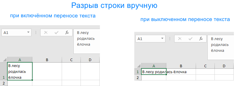 - В ячейке щелкните место, где нужно ввести разрыв строки, и нажмите ALT+ВВОД.