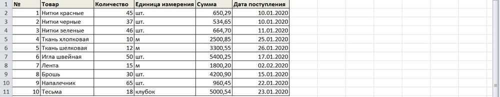 Чтобы понять, как работает функция, необходимо открыть книгу и создать таблицу с данными.