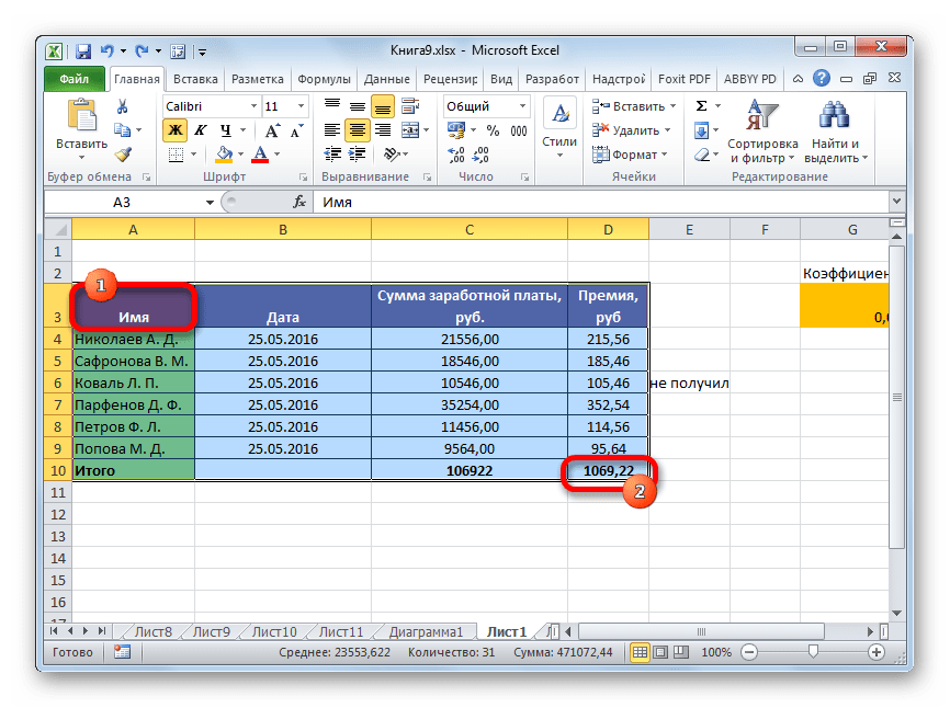 В таблице подсвечены все нужные нам данные и нам уже не надо взором их находить по всему столбцу.