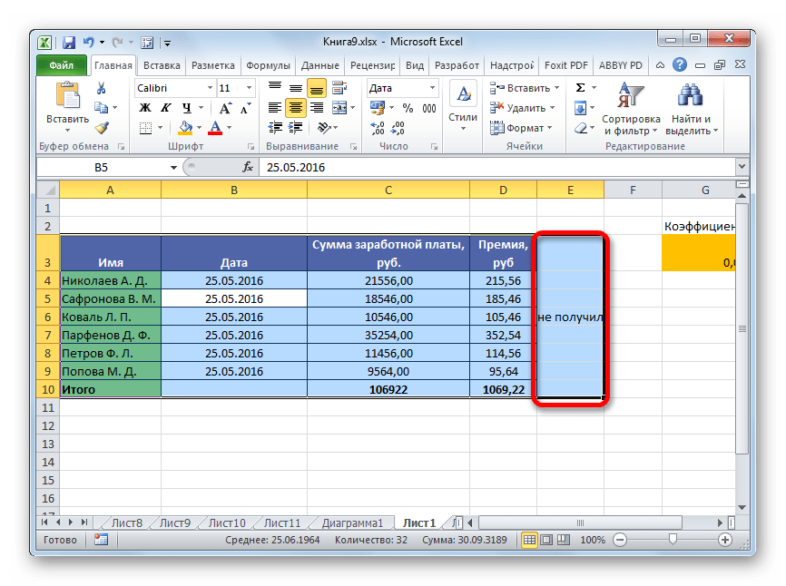 Способ 2: выделение столбца