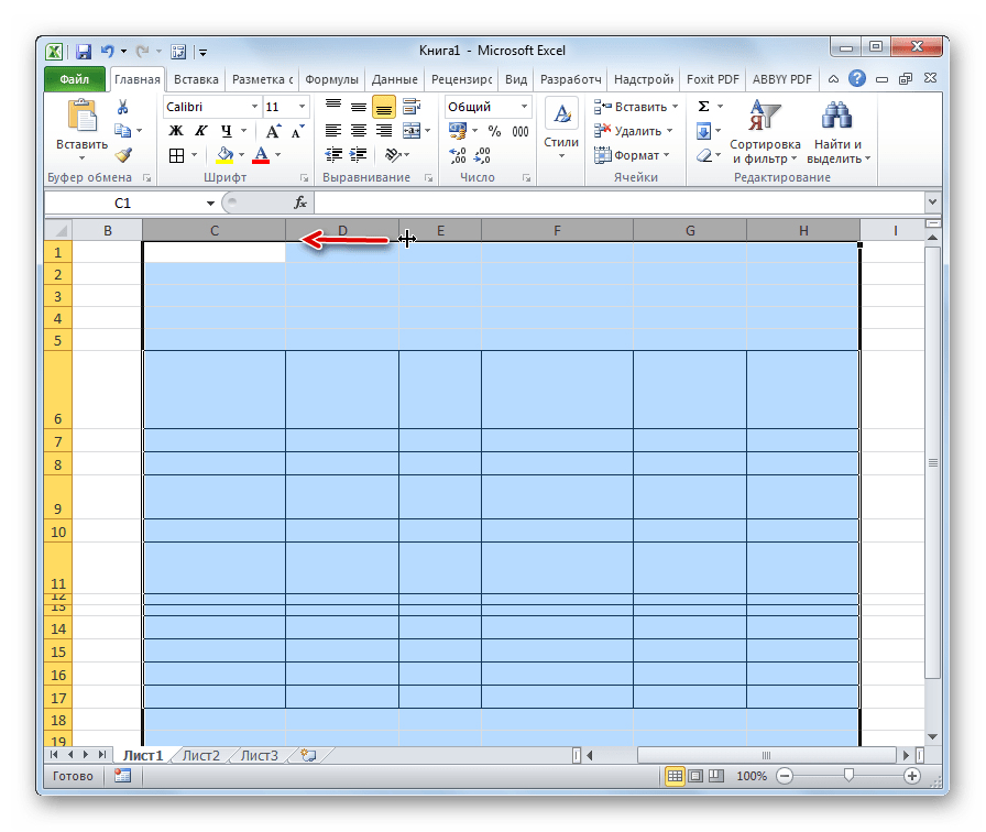 10. Переместите указатель на вертикальную линию границы меж первым и вторым столбцом, чтоб значок принял форму двунаправленной стрелки, и нажмите левую клавишу мыши.