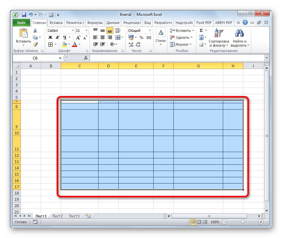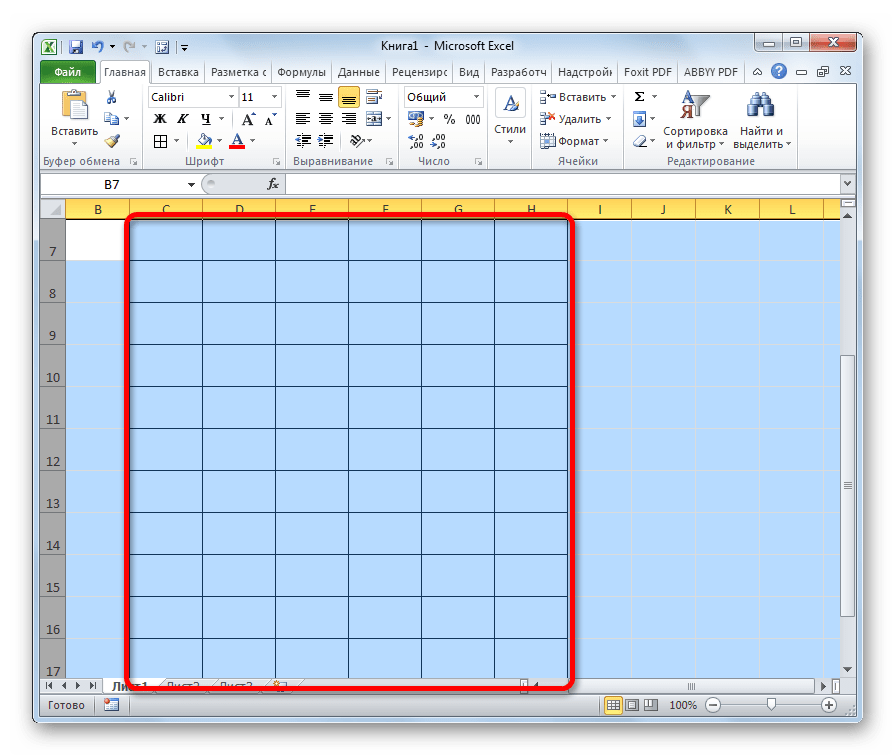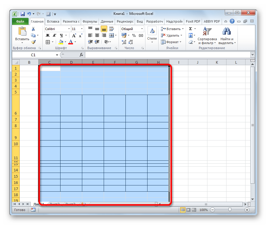 Как видим, после выполненных манипуляций ячейки выделенной области стали абсолютно одинаковыми по размеру.
