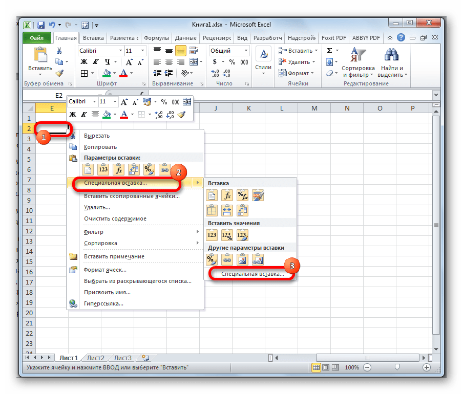 Вставить целые строки и столбцы можно также, щелкнув правой кнопкой мыши на выделенной области и выбрав в контекстном меню пункт Вставить.