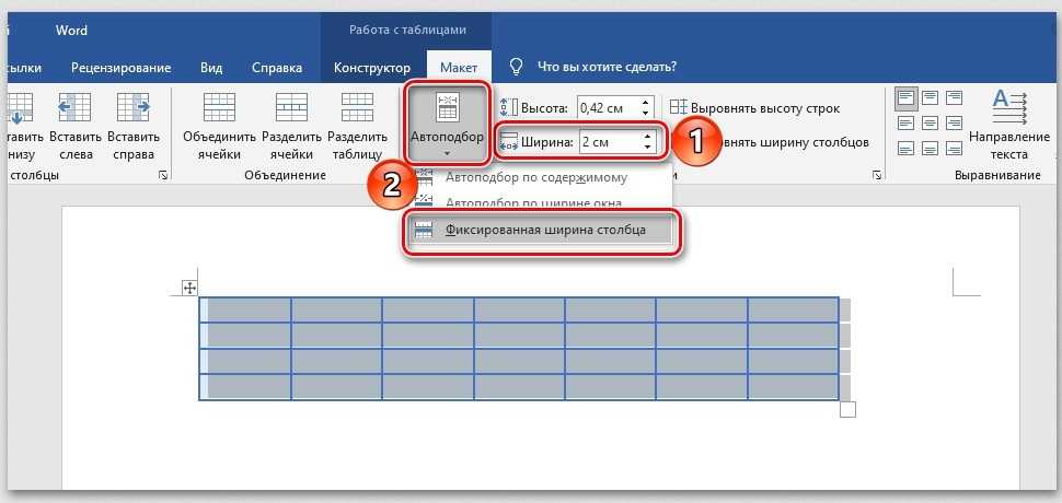 Например, выделив таблицу и открыв вкладку «Макет», можно обратить внимание на блок инструментов «Размер ячейки». Через опцию «Автоподбор» вы способны задать как фиксированное значение, так и автоматически подбираемое