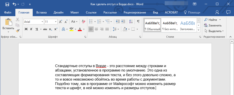 Расположение текста на в документе Word изменится согласно заданным вами параметрам отступов.