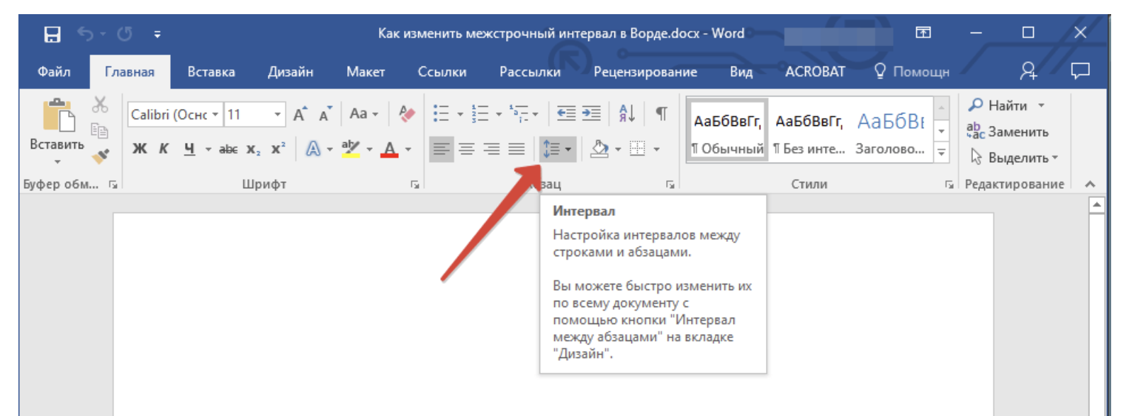 2. Нажмите на кнопку “Интервал”, которая находится в группе “Абзац”, вкладка “Главная”.