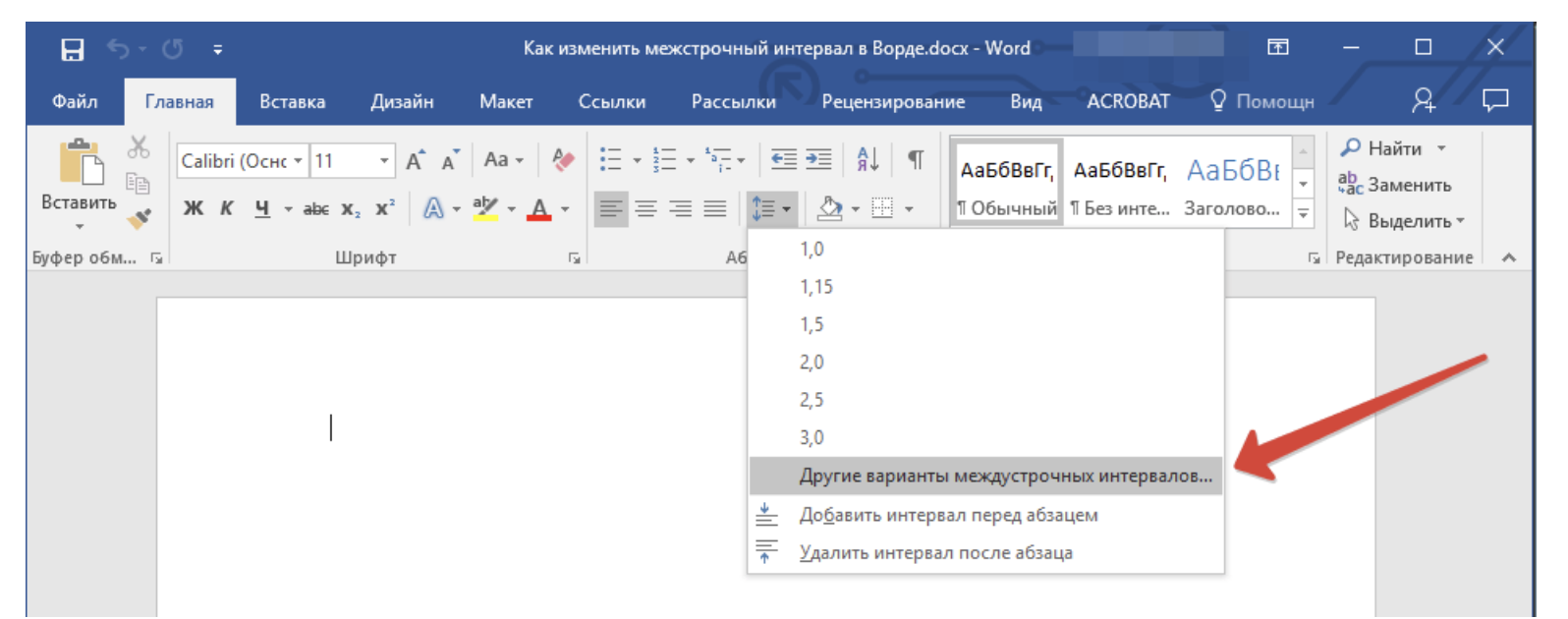 4. Если ни один из предложенных вариантов вам не подходит, выберите пункт “Другие варианты междустрочных интервалов”.