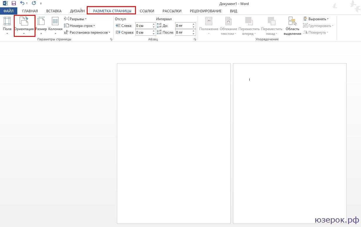 3. Теперь мы видим на экране несколько листов. Если вы хотите сделать альбомную ориентацию, то ее можно поменять в разделе «Разметка страницы», далее «Ориентация».