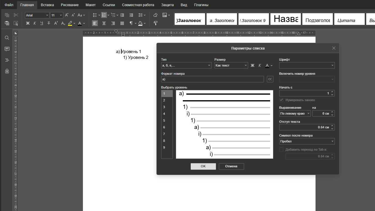 Итак, разобравшись, как он создается, давайте посмотрим, как меняется внешний вид многоуровневого списка.