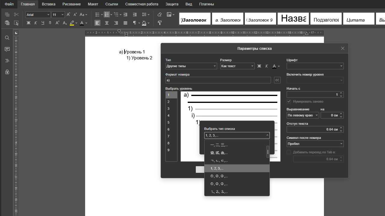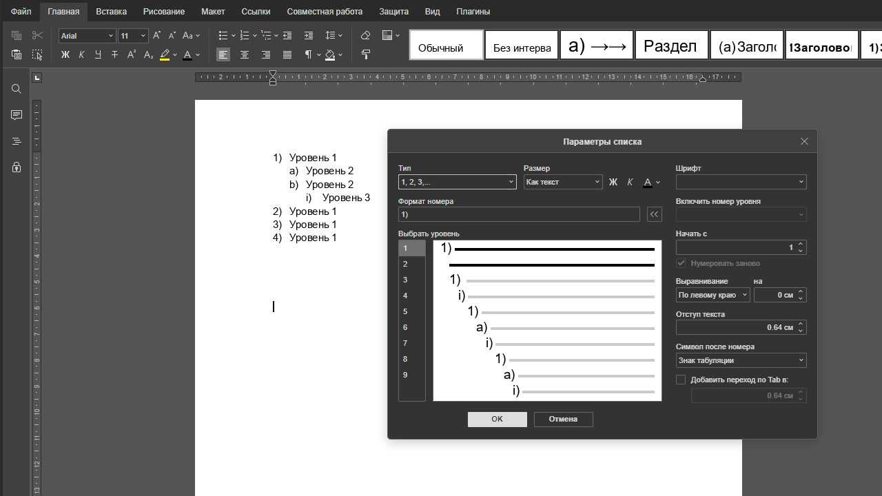 Как настроить произвольный многоуровневый список