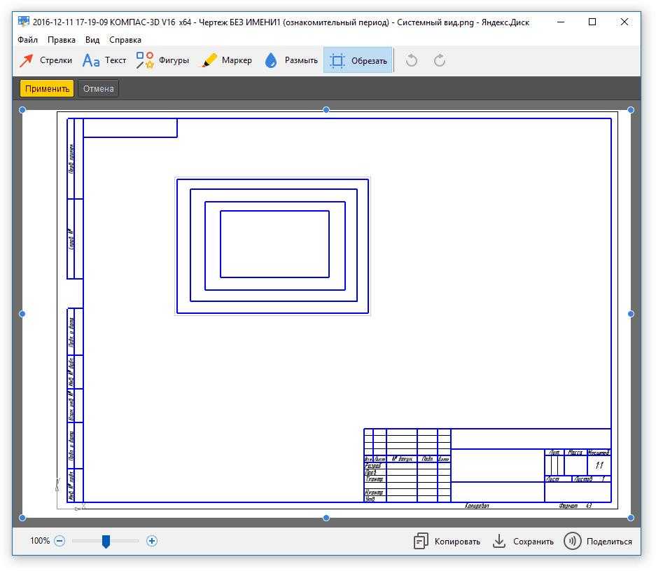 1. Сделайте скриншот окна с объектом в Компасе-3D. Для этого выполните одно из нижеуказанных действий: